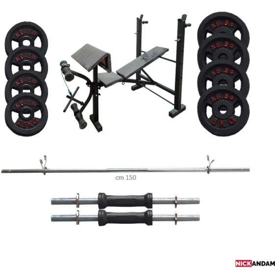 دستگاه بدنسازی 12 کاره خانگی پروفیل 50+ وزنه+ هالتر+ دسته دمبل